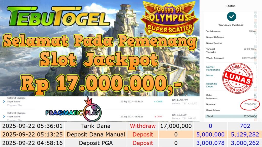 Selamat kepada User id : DEPA***** telah berhasil mendapatkan kemenangan besar pada permainan SLOT GATES OF OLYMPUS SUPER SCATTER dengan … Baca selengkapnya...
