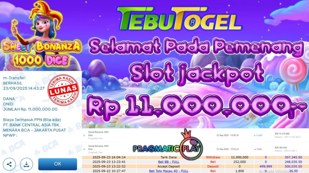 Selamat kepada User id : SARONI**** telah berhasil mendapatkan kemenangan besar pada permainan SLOT SWEET BONANZA 1000 DICE dengan kemenangan … Baca selengkapnya...