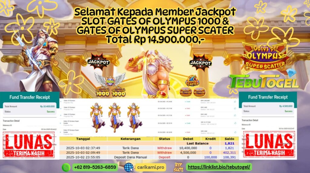 BUKTI JACKPOT SLOT GATES OF OLYMPUS SUPER SCATTER Rp 10.000.000,- LUNAS