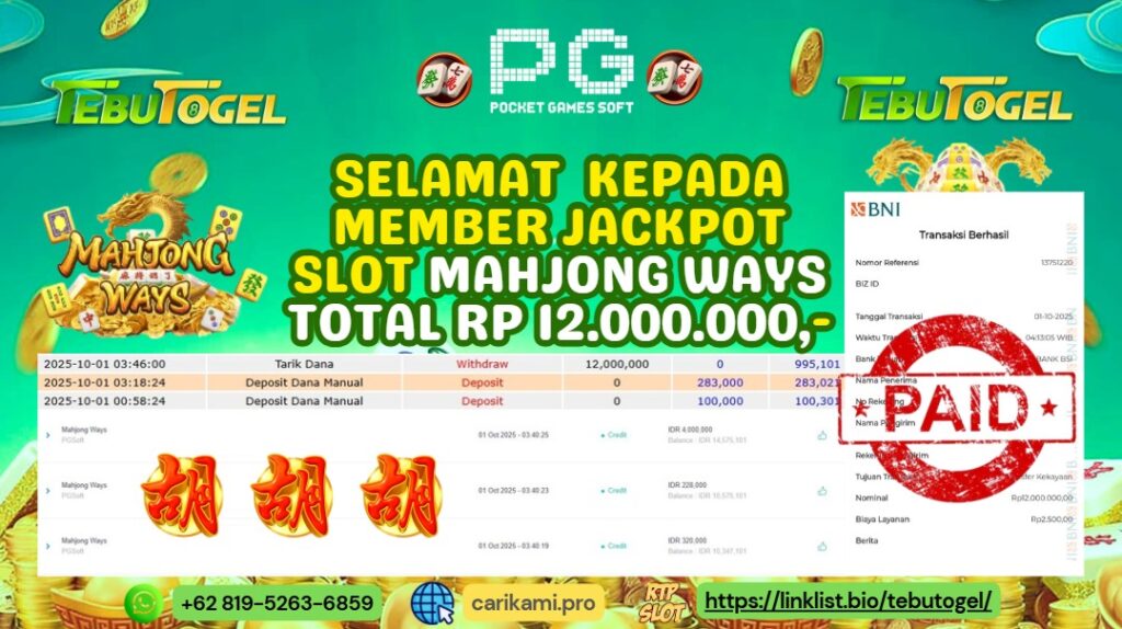 Selamat kepada User id : KEGAN*** telah berhasil mendapatkan kemenangan besar pada permainan SLOT MAHJONG WAYS dengan kemenangan sebesar Rp … Baca selengkapnya...
