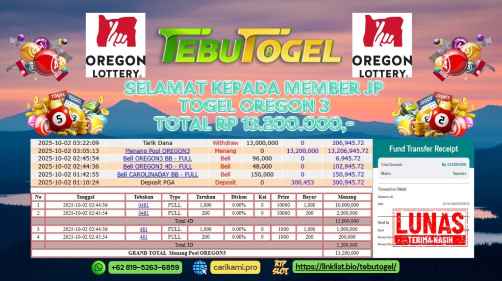 Selamat kepada User id : SAW*** telah berhasil mendapatkan kemenangan besar pada permainan TOGEL OREGON 3 dengan kemenangan sebesar Rp … Baca selengkapnya...