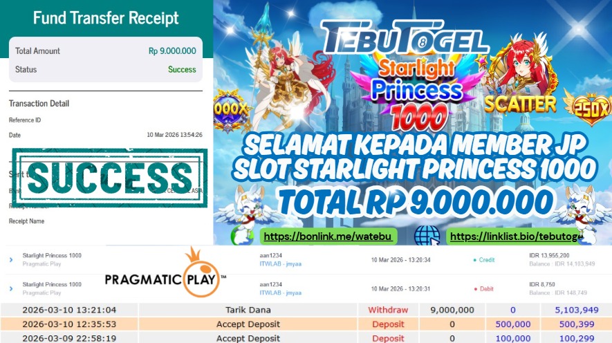Selamat kepada User id MIMI*** telah berhasil mendapatkan kemenangan besar pada permainan SLOT SWEET BONANZA 1000 dengan kemenangan sebesar Rp … Baca selengkapnya...