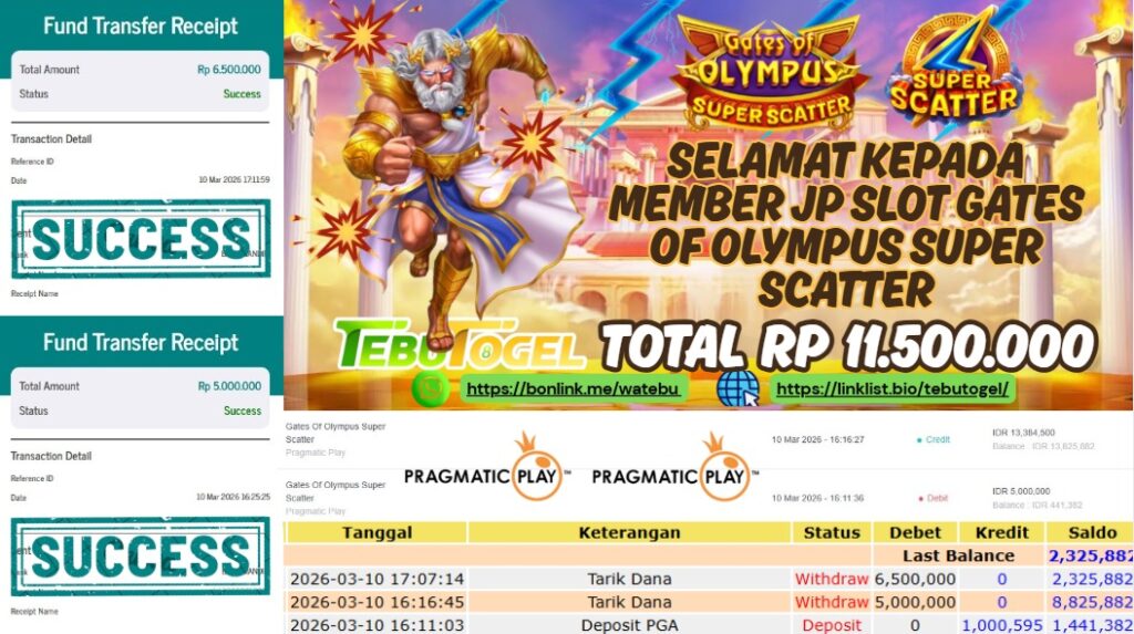 Selamat kepada User id : KOMSORT000** telah berhasil mendapatkan kemenangan besar pada permainan SLOT GATES OF OLYMPUS 1000 dengan kemenangan … Baca selengkapnya...